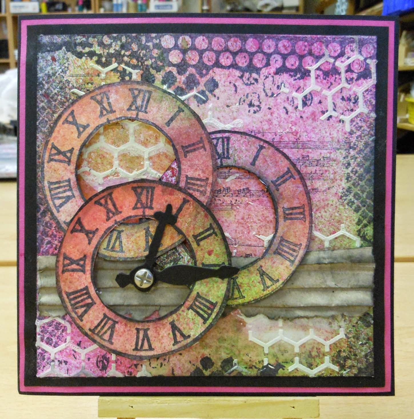 On this card she has used our Roman Clock along with several of our Grunge stamps.
